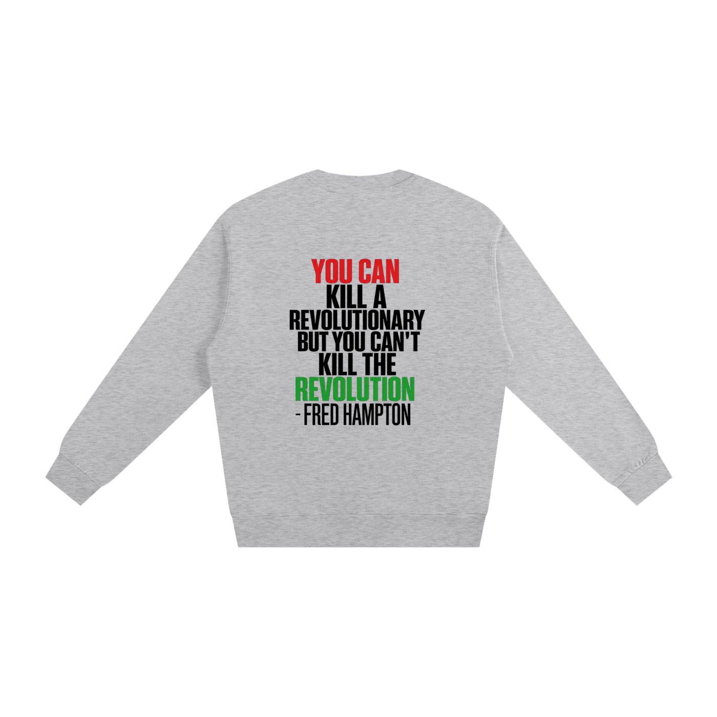 Celebrate the legacy of Fred Hampton with this 2026 Black History crewneck. A french terry fabric sweater featuring the iconic Black Panther flag colors in our black history logo. The back of this piece carries a powerful Fred Hampton quote that still resonates till today. A meaningful tribute to a pivotal figure in American civil rights movement in the 1960s.